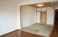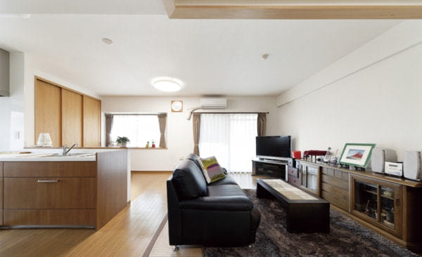 和室の間仕切りを取り払いバリアフリーな広々リビングに