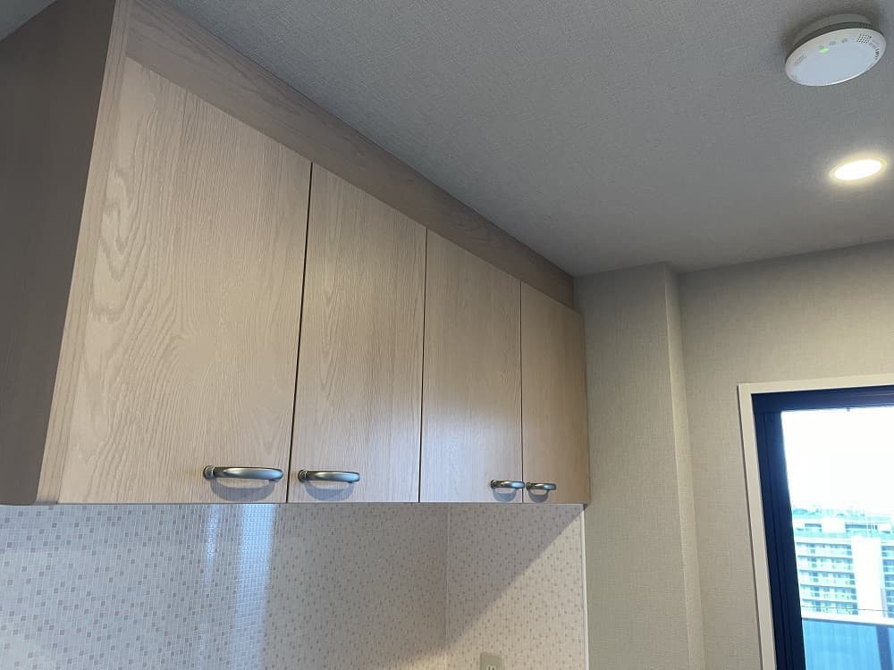 吊り戸部分です。収納の上部分もこだわって扉色で揃えておりますので全体的に綺麗にまとまっております。