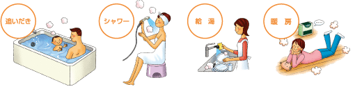 キッチン・洗面・シャワーなどへの給湯、湯はりができます。