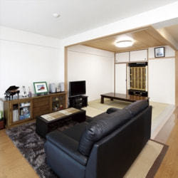 和室の間仕切りを取り払いバリアフリーな広々リビングに