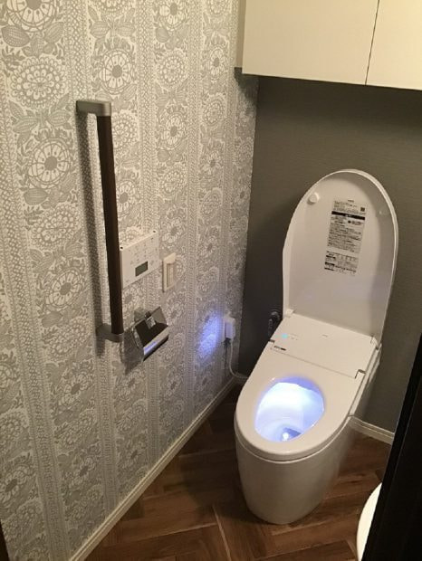 そして、何といってもクロスや床にこだわっていただいたので、とってもオシャレなトイレ空間になりました。