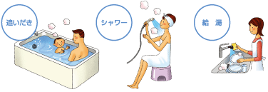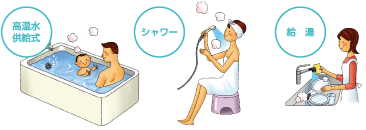 キッチン・洗面・シャワーなどへの給湯、湯はりができます。