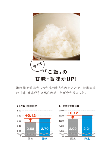 飲み水としての利用だけでなく、野菜を洗う時やご飯を炊く際にも浄水は甘味・旨み成分がアップするとか!